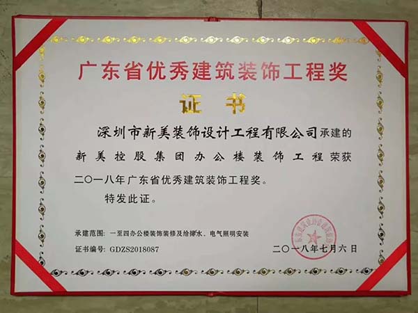 您的位置: 新美首頁(yè) > 新聞資訊 > 新美動(dòng)態(tài) > 喜訊 | 熱烈祝賀新美裝飾榮獲“2018年廣東省優(yōu)秀建筑裝飾工程獎(jiǎng)”