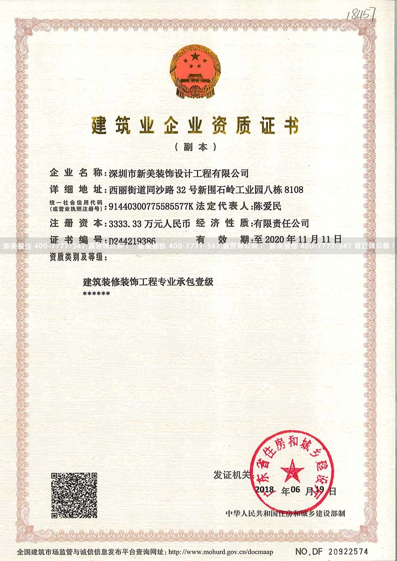 建筑裝修裝飾工程專業(yè)承包資質(zhì)壹級(jí)