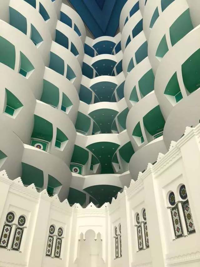 謝赫扎耶德清真寺是為已故老國王扎伊德所建,是阿聯酋的標志性建筑﹐整個建筑群都用來自南斯拉夫的白玉大理石,莊嚴肅穆,充分體現了伊斯蘭的風格。