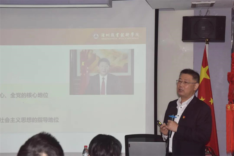 隨后,為持續(xù)推進(jìn)學(xué)習(xí)和宣傳貫徹黨的十九屆六中全會精神的走深走實(shí),會議特邀深圳市黨代表、深圳職業(yè)技術(shù)學(xué)院楊欣斌書記,做十九屆六中全會精神解讀專題授課。楊書記以“十九屆六中全會精神的數(shù)字密碼——準(zhǔn)確把握《中共中央關(guān)于黨的百年奮斗歷史重大成就和歷史經(jīng)驗的決議》的精髓要義”為題,進(jìn)行了深入淺出的解讀,讓參會人員更系統(tǒng)、更全面、更深入地了解了黨的十九屆六中全會的重要成果及影響。